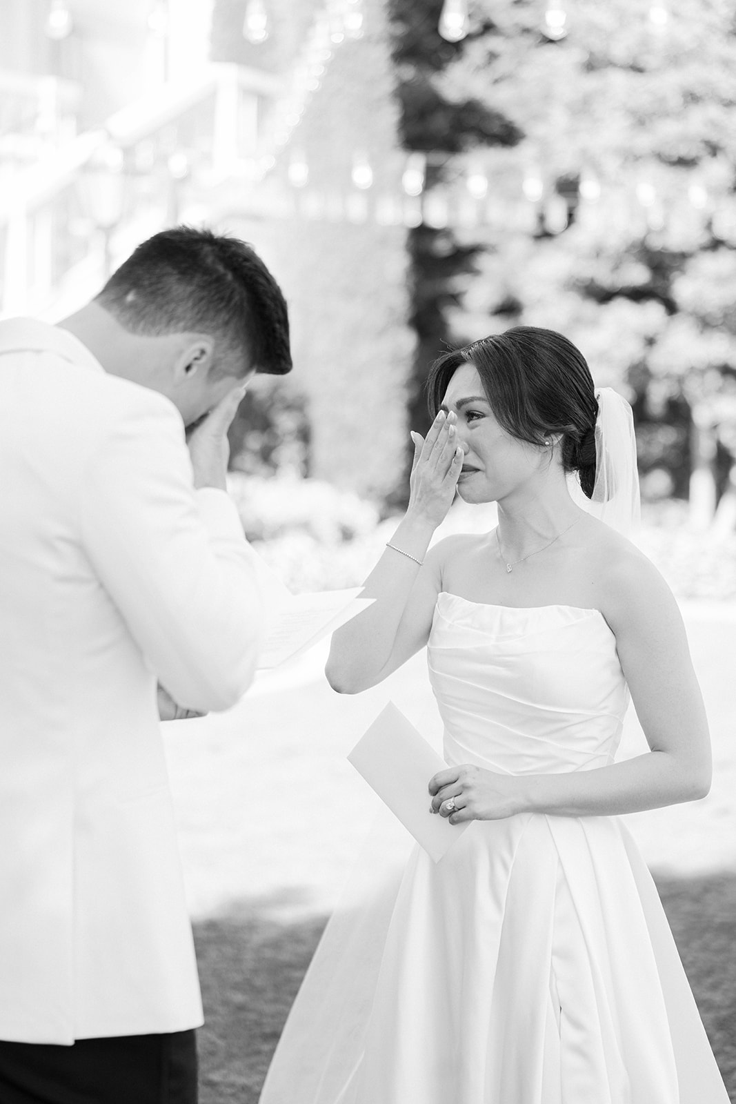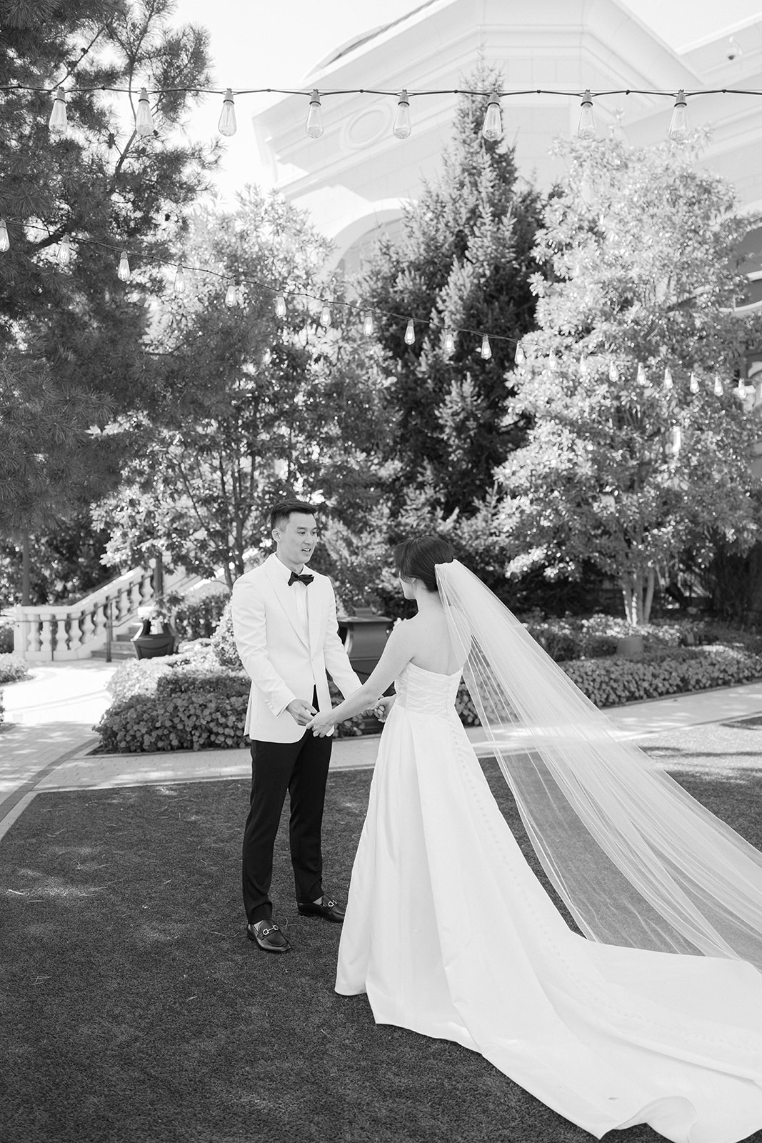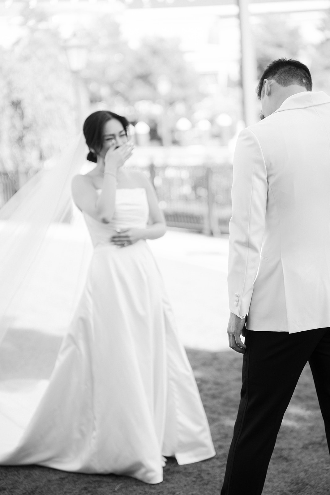 Encore’s architecture and soft morning light created a stunning setting for Kim and James’ first look. The moment was raw and real. Both of them shed tears as they saw each other for the first time and read the private vows that they wrote to each other. They smiled through their happy tears, and trust me, there wasn’t a dry eye watching them.