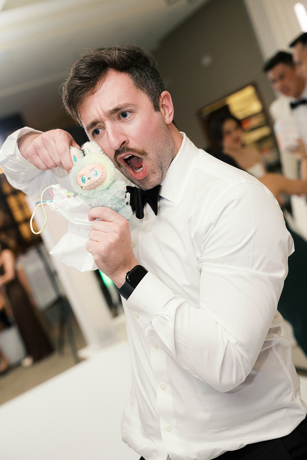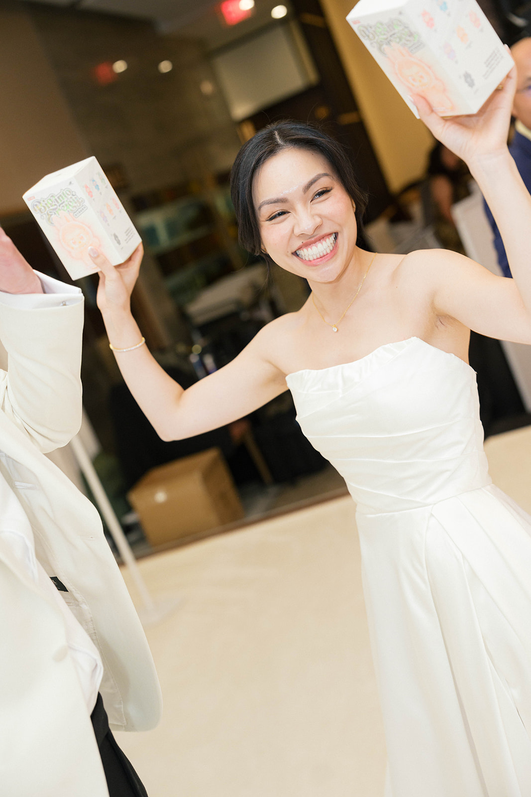 Instead of a classic bouquet toss, Kim and James opted for a Labubu toss. Yes. A Labubu toss. As you can probably imagine, the second they held out the Labubu boxes, the crowd roared with energy. Kids, adults, men, women, everyone tried their best to catch the Labubu’s. This was a hilarious and personal touch to their wedding, and I loved photographing it.